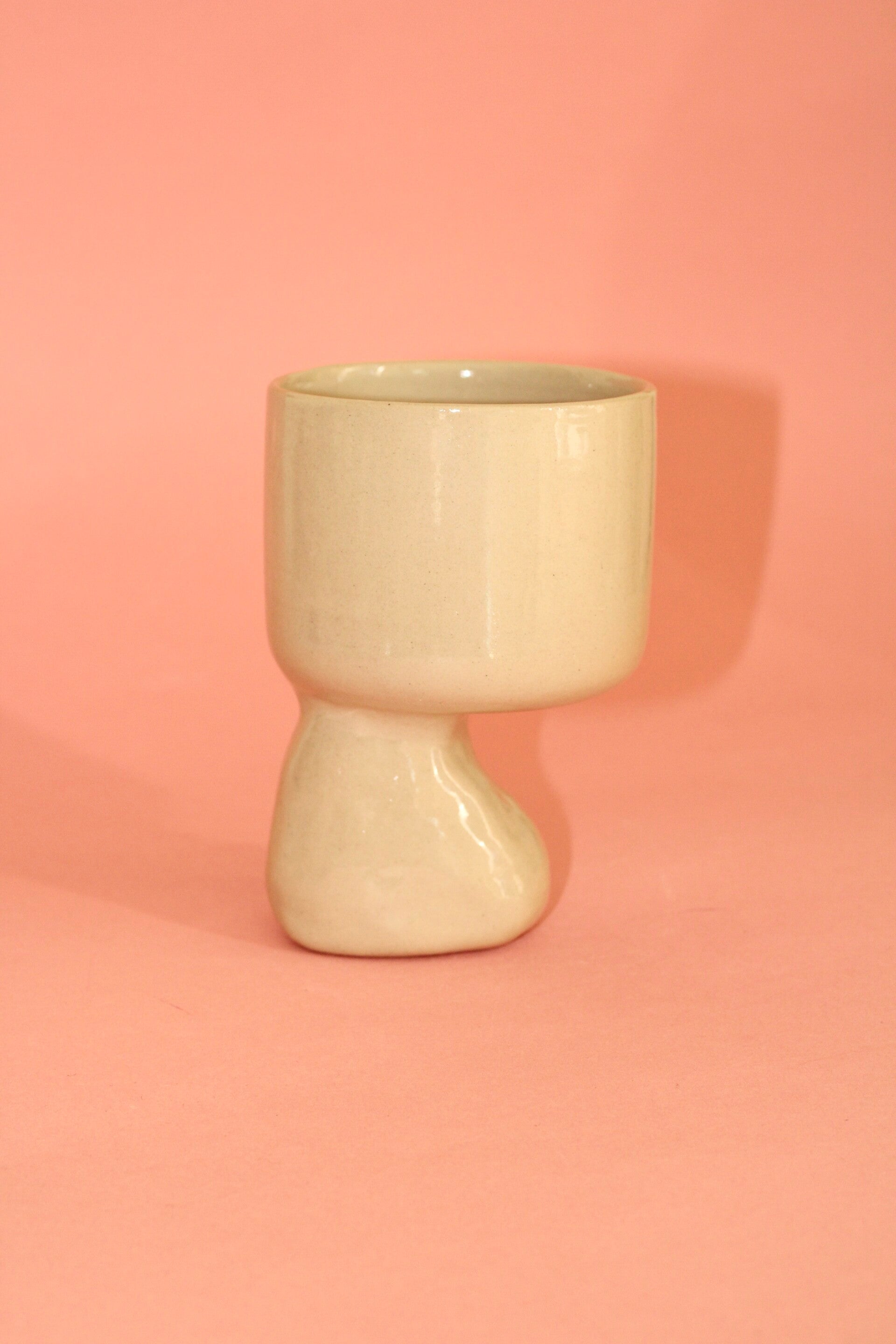 handgedraaide steengoed wijnbeker. gemaakt van witte klei. geglazuurd met transparant, glanzend glazuur.