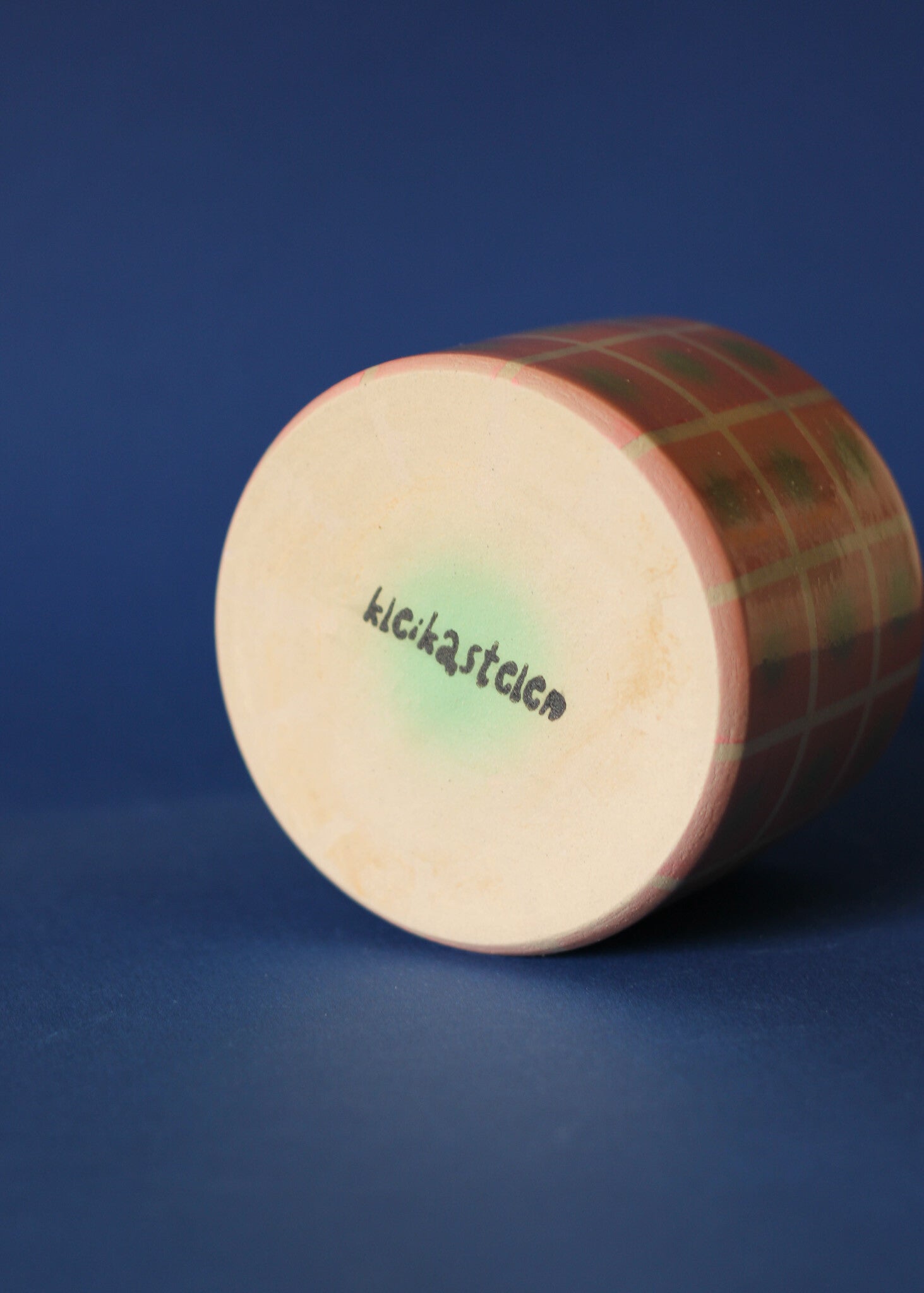 wheel thrown ceramic cup with airbrushed design in pink and green. dishwasher safe, but hand washing is recommended.