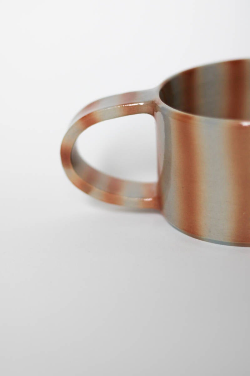 wheel thrown ceramic mug with airbrushed design in grey blue and brown. dishwasher safe, but hand washing is recommended.